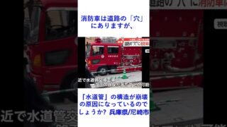 消防車は道路の「穴」にありますが、「水道管」の構造が崩壊の原因になっているのでしょうか?兵庫県/尼崎市